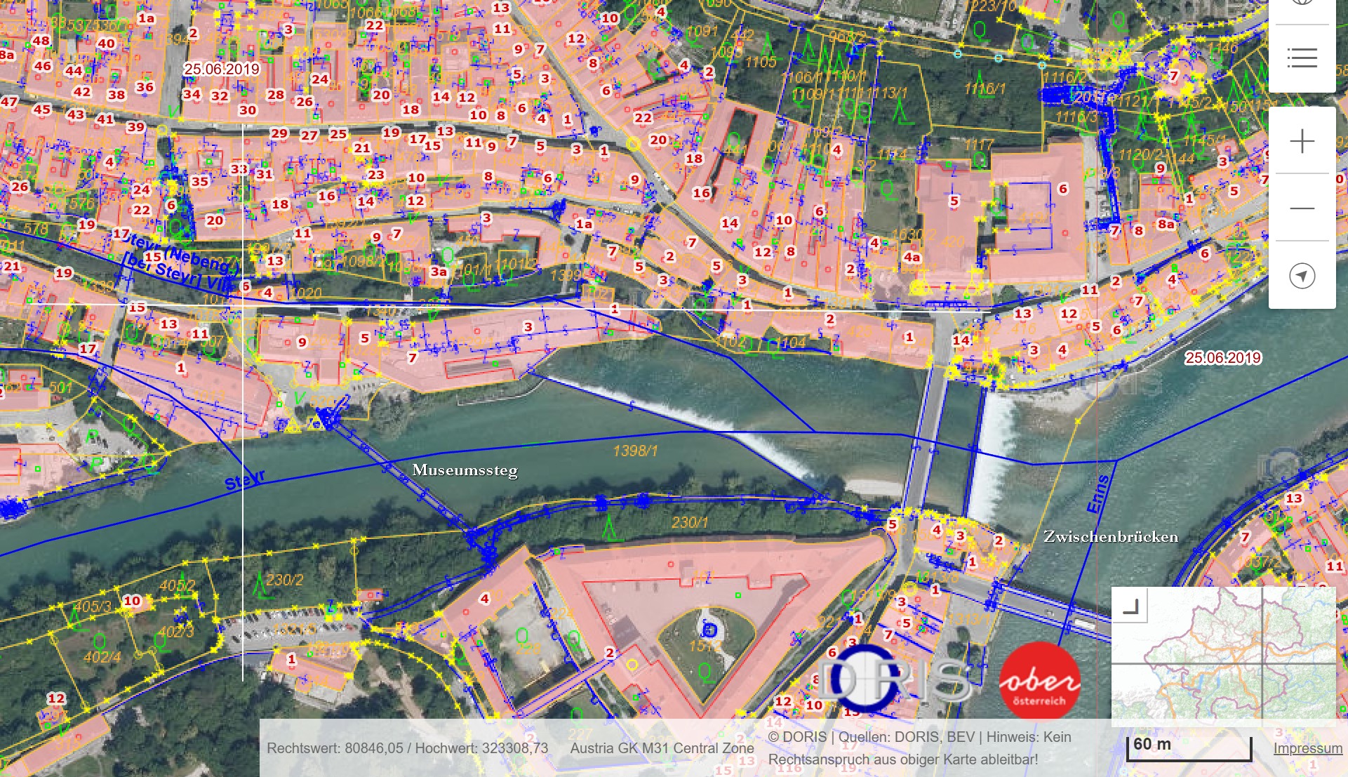 | Hinweise: | Straßenbreite Zufahrt über Wehrgrabengasse 3 m Baustelle in Hochwasserzone (HQ100 im Eingangsbereich 1,11 m) |